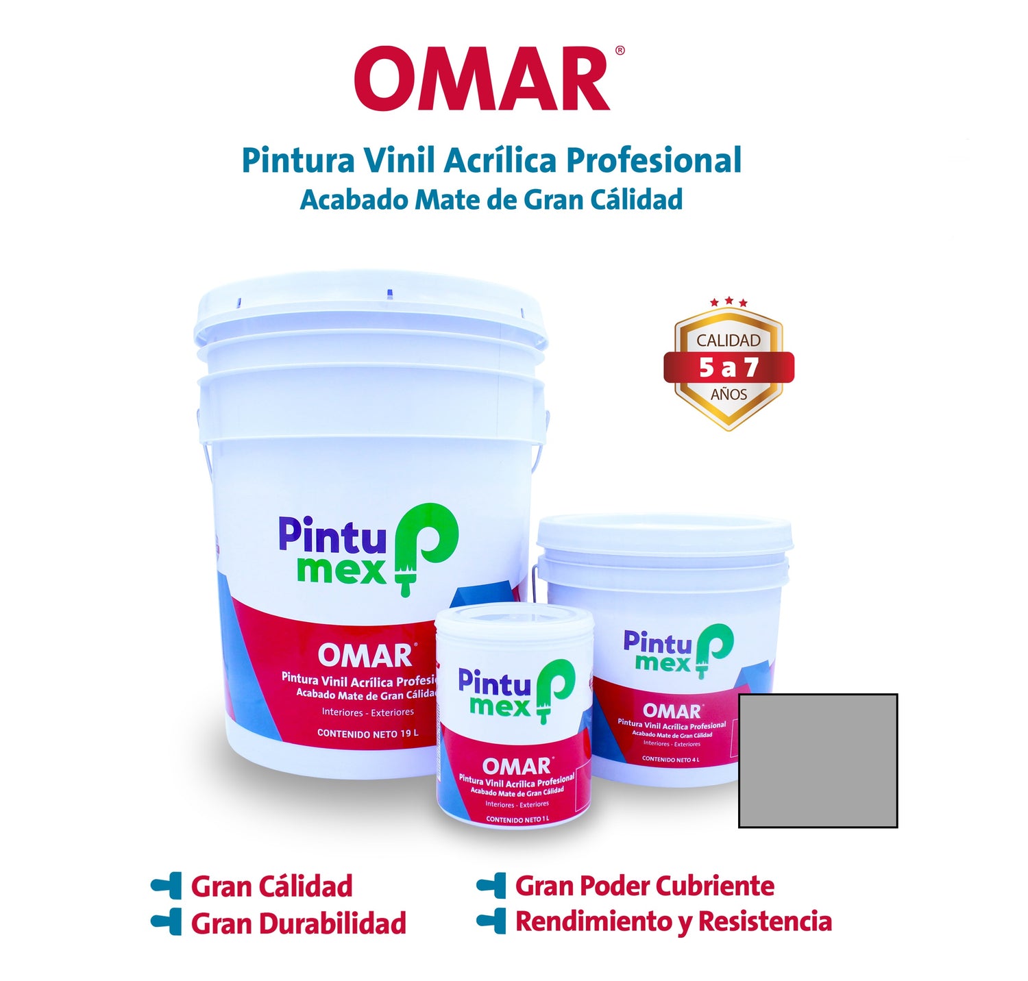 OMAR es una pintura base agua con ACABADO MATE. De gran poder CUBRIENTE, RENDIMIENTO y RESISTENCIA. Para USO PROFESIONAL, COMERCIAL Y DOMÉSTICO. Rendimiento de 6 a 7 m² por litro. Garantía de calidad de 5 a 7 años.