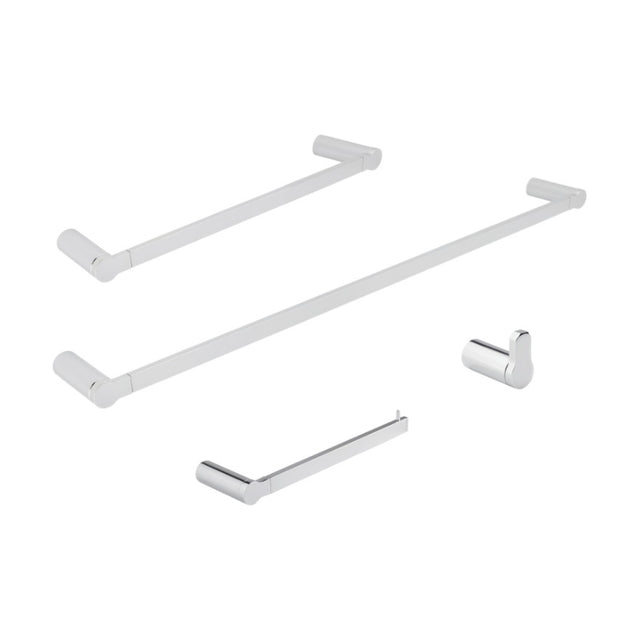 Incluye: Toallero corto y largo, portarollo, gancho y opresor.
